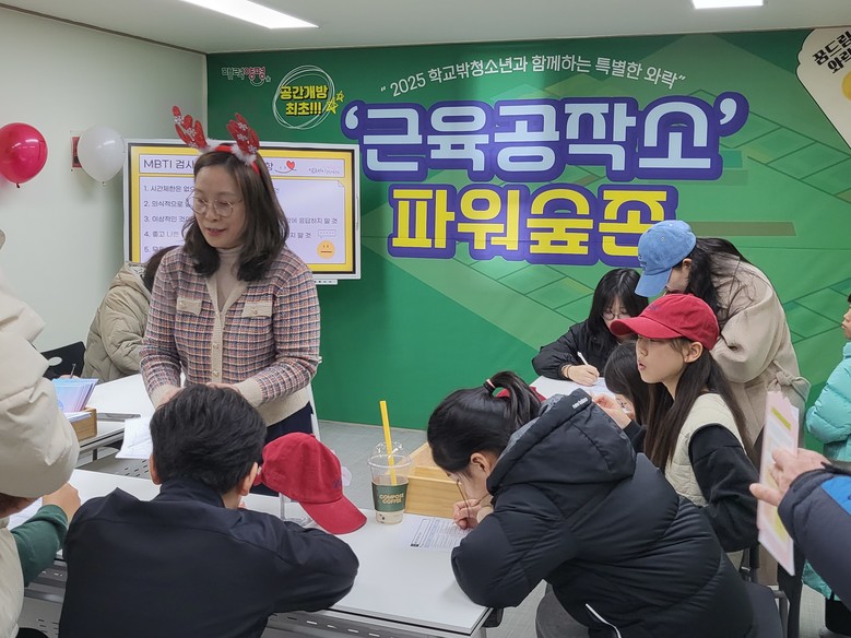 작은 예술제에서는 난타와 기타 공연을 비롯해 미술동아리 작품 전시가 함께 진행됐으며, 공간 개방 행사 ‘메리 와락! 특별한 하루’에서는 온라인 직업 흥미검사, MBTI 오프라인 검사, 학교 밖 청소년 이해를 돕는 OX 퀴즈, 산타와 함께하는 사진촬영, 감사트리 등 청소년·학부모·지역주민이 함께 참여할 수 있는 다양한 체험 프로그램이 운영됐다.