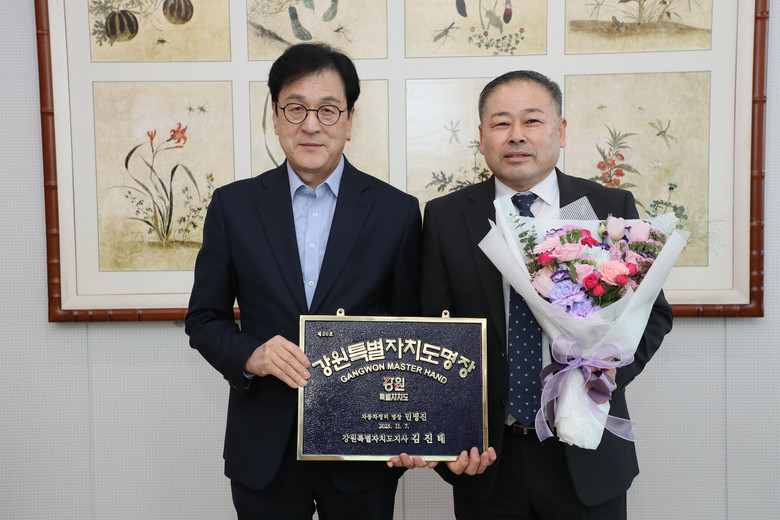 [강원도 세계타임즈=김민석 기자] 강원특별자치도는 11월 7일(금) 도청 통상상담실에서 ‘2025년 강원특별자치도 명장 수여식’을 개최하고, 자동차정비 분야의 기아㈜ 원주서비스센터 민병진 기술책임과 제과·제빵 분야의 베이커리가루 이득길 대표이사를 강원특별자치도 명장으로 선정했다고 밝혔다.