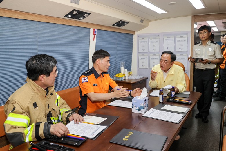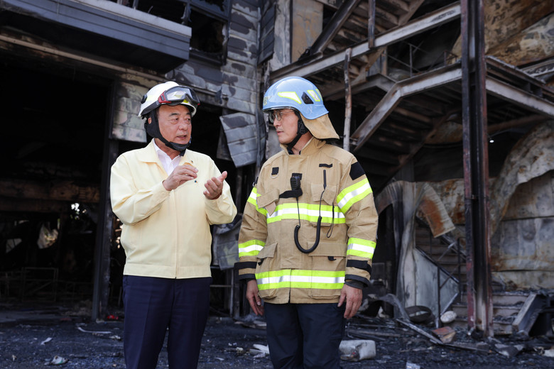 [대구 세계타임즈=한성국 기자] 대구시의회 이만규 의장은 6월 16일(금) 오후, 지난 15일 발생한 서구 중리동 공장화재 현장을 방문하여 피해 상황을 파악하고 수습 대책을 논의했다. 이만규 의장은 사고 수습에 노고가 많은 소방공무원들을 격려하는 한편, 철저한 원인 규명과 개선 대책 마련을 당부했다.