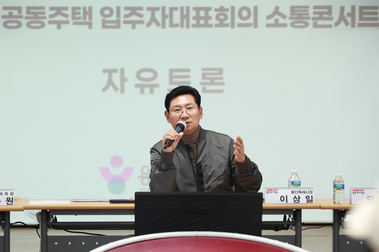 [용인시 세계타임즈=송민수 기자] 이상일 용인특례시장은 19일 오후 기흥구청 다목적홀에서 지역 34개 공동주택 입주자대표 44명과 ‘입주대표의회의 소통콘서트’를 열고 단지별 문제나 불편을 개선하는 방안 등을 논의했다.
