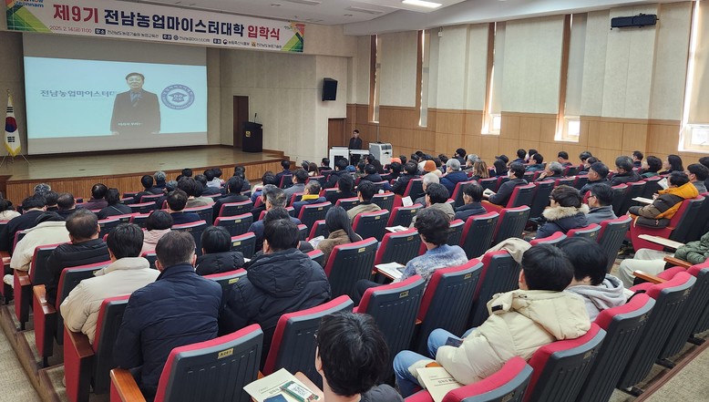 [전남 세계타임즈=우덕현 기자] 전라남도농업기술원(원장 김행란)은 14일 농업교육관에서 송경환 전남농업마이스터대학 학장과 제9기 전남농업마이스터대학 입학생 등 330여 명이 참석한 가운데 입학식을 개최했다.