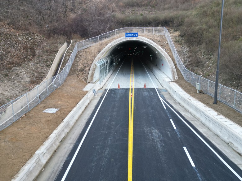 증산~가천 간 도로는 연장 4.5㎞에 사업비 560억원을 투입해 2018년 12월 19일 착공 이후 7년 만인 2025년 12월 13일 정식으로 개통된다.