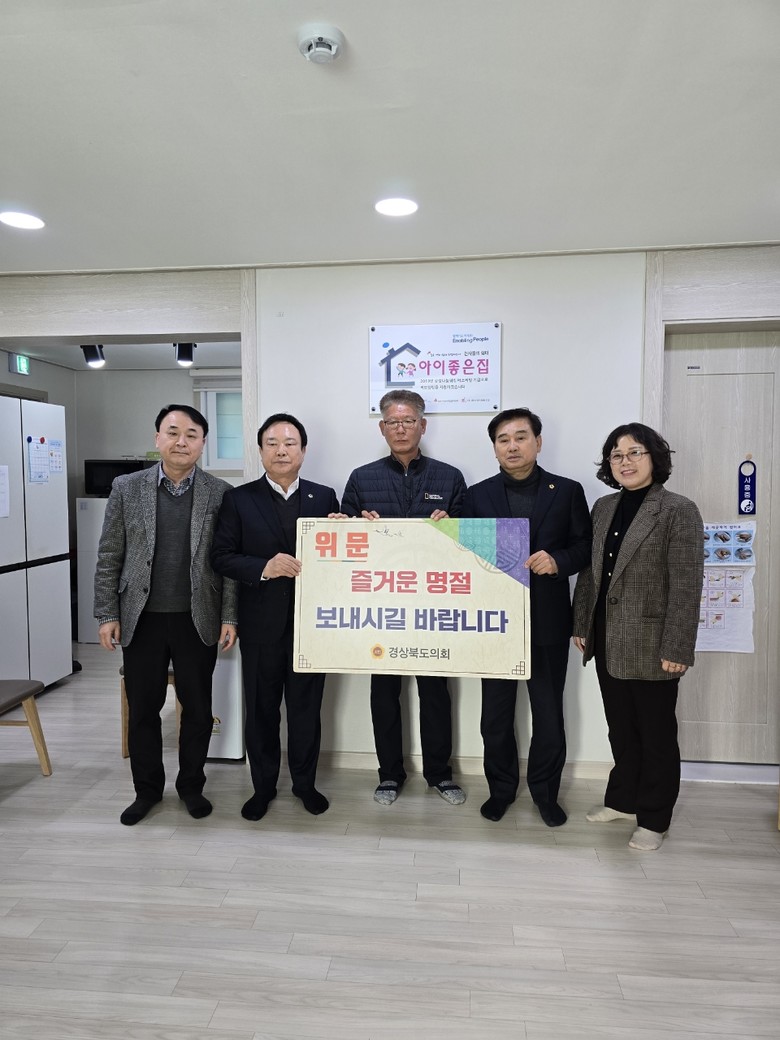 [경북 세계타임즈=한윤석 기자] 경상북도의회 황두영ㆍ허복ㆍ김용현ㆍ김일수 의원은 15일, 설 명절을 맞아 경상북도의회를 대표해 구미시 소재 금오종합사회복지관과 아이좋은집을 찾아 도의회에서 준비한 위문품을 전달하고 관계자들을 격려했다.