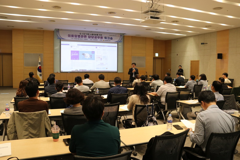 이번 워크숍은 지방의회에서 핵심 업무를 담당하는 도 및 시군의회 공무원들의 입법역량 강화를 위한 전문강사 초청 특강과 함께, 관련 담당자들이 한자리에 모여 서로 간의 업무정보를 공유하고 소통과 협력을 강화하는 교류의 장을 위해 마련되었다.