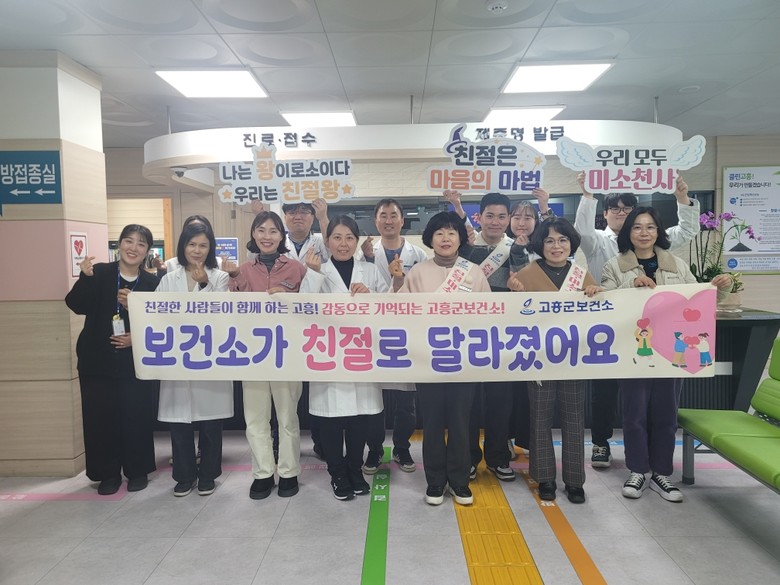 고흥군 보건소는 고흥군민의 건강증진과 질병 예방을 위해 최선을 다하고 있다. 매월 첫째 주 화요일을 ‘어르신 민원인을 위한 날’로 정하고 업무 시작 전 보건소 전 직원이 모여 친절 다짐 선언을 제창하며, 민원인들에게 친절한 미소로 봉사하고, 특히 어르신 민원인이 편안하게 느낄 수 있는 보건소가 되기를 다짐하고 있다.