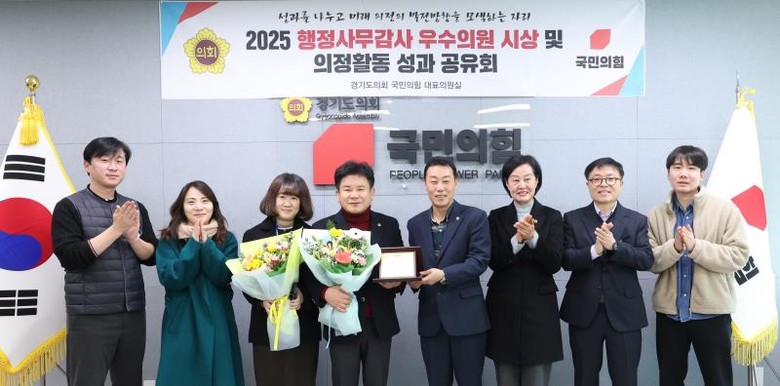 [경기도 세계타임즈=송민수 기자] 문병근 경기도의회 건설교통위원회 부위원장(국민의힘, 수원11)이 12일 경기도의회 국민의힘 회의실에서 열린 「2025 행정사무감사 우수의원 시상식 및 의정활동 성과 공유회」에서 ‘행정사무감사 우수의원’에 선정되었다. 이번 시상식은 행정사무감사를 통해 도민 중심의 정책 대안을 제시하고, 도정 전반의 운영을 꼼꼼히 살핀 의원들을 격려하기 위해 마련되었다.